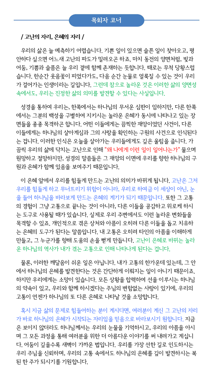 2025년 10월 26일 목회자 코너