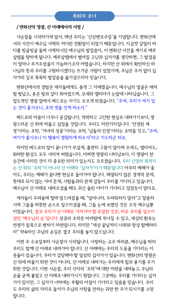 2026년 2월 15일 목회자 코너