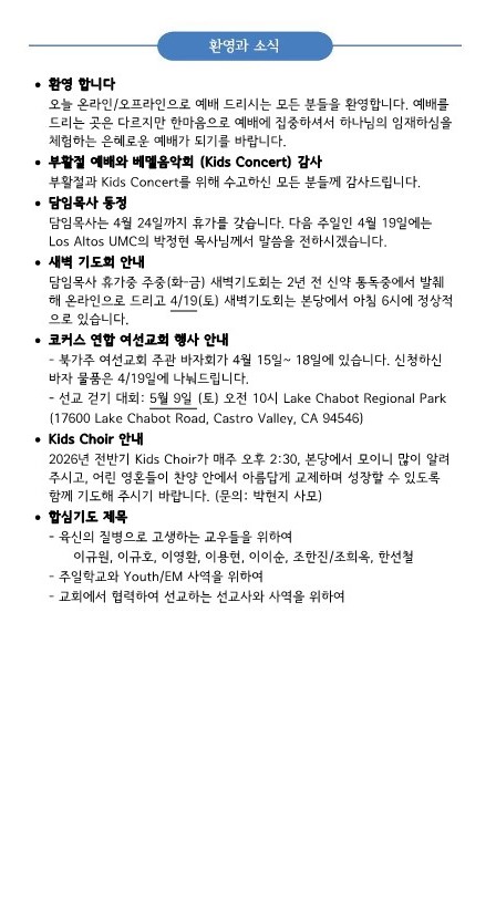 베델 음악회 “Kids Concert” – 4/11 (토) 4:30