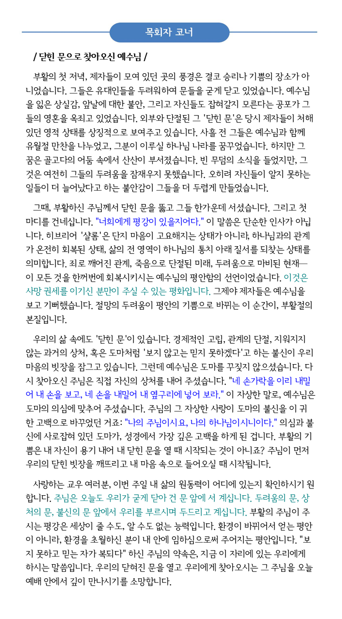 2026년 4월 19일 목회자 코너