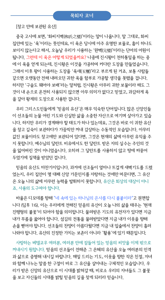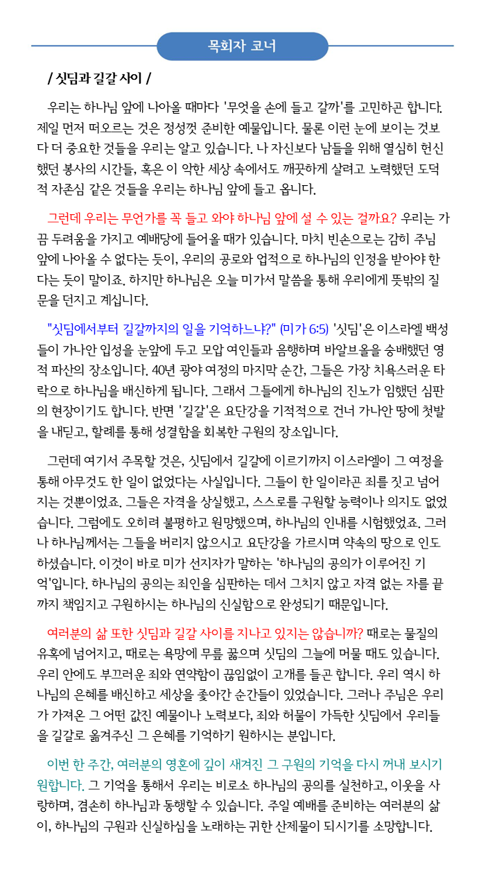 • 주제: 교회 사역과 목회자, 교우들을 위한 기도