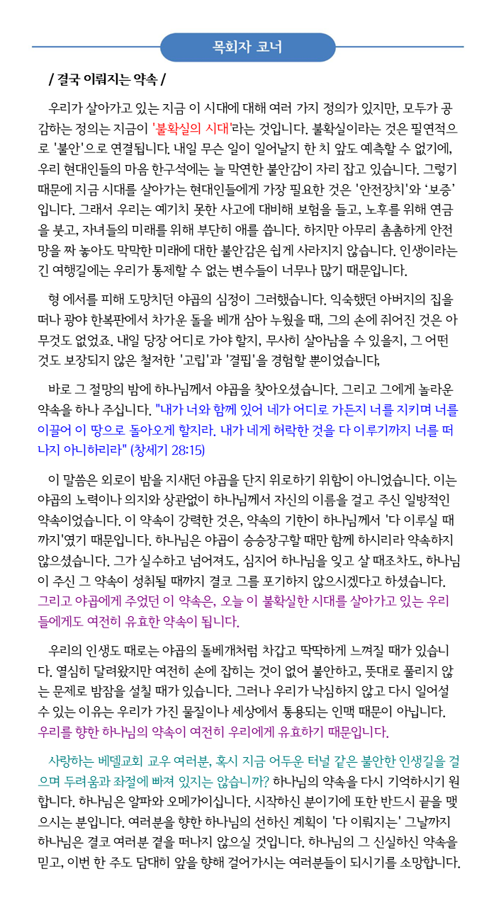 베델교회에 대하여 궁금하신 점이 있으시면 아래의 폼을 작성해 보내주시면 바로 연락드리겠습니다.