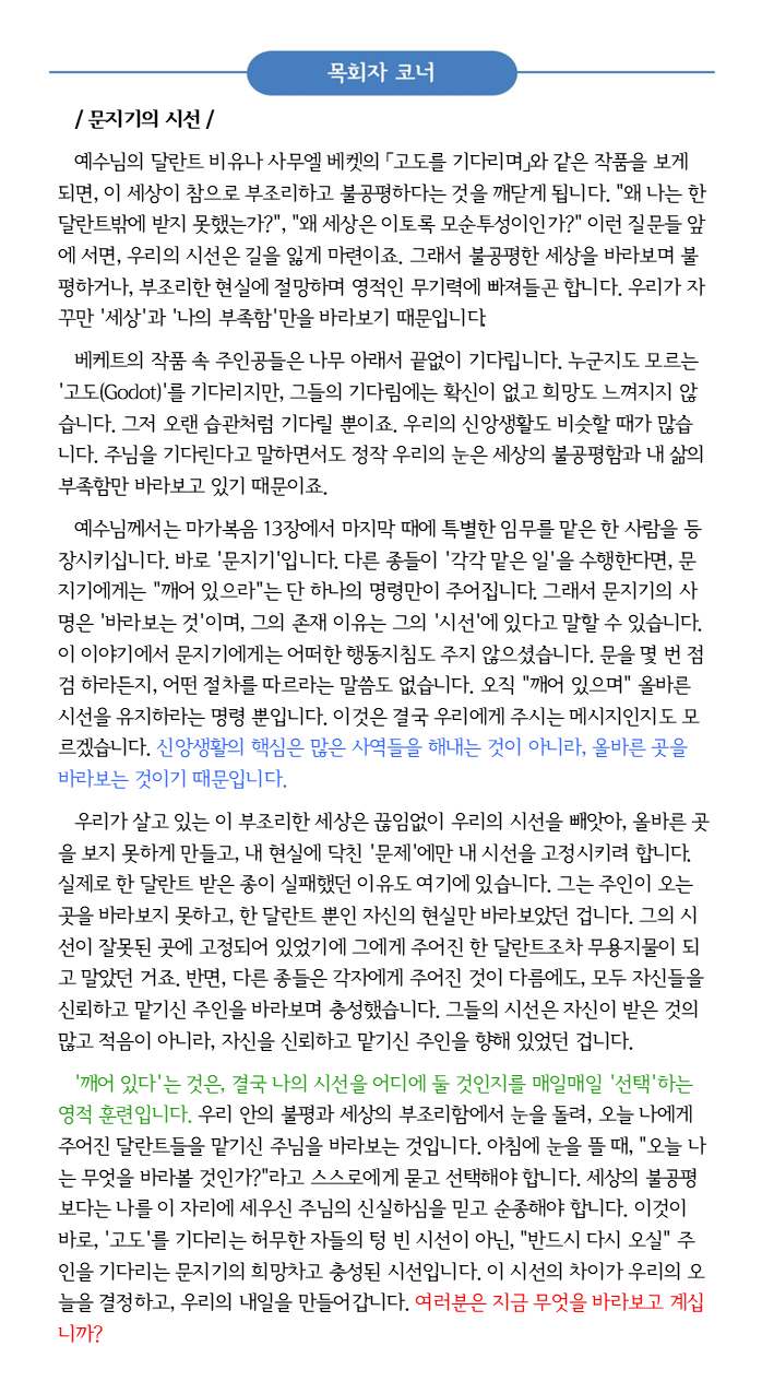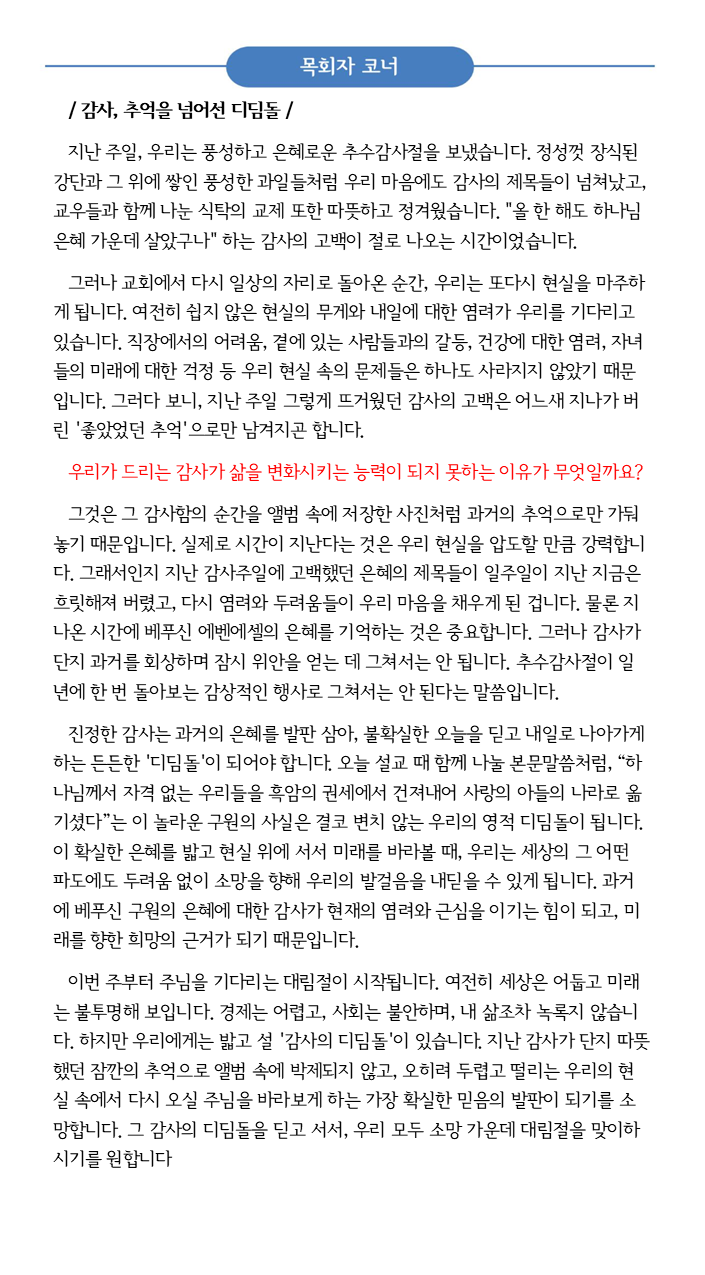 - 주제: 교회 사역과 목회자, 교우들을 위한 기도